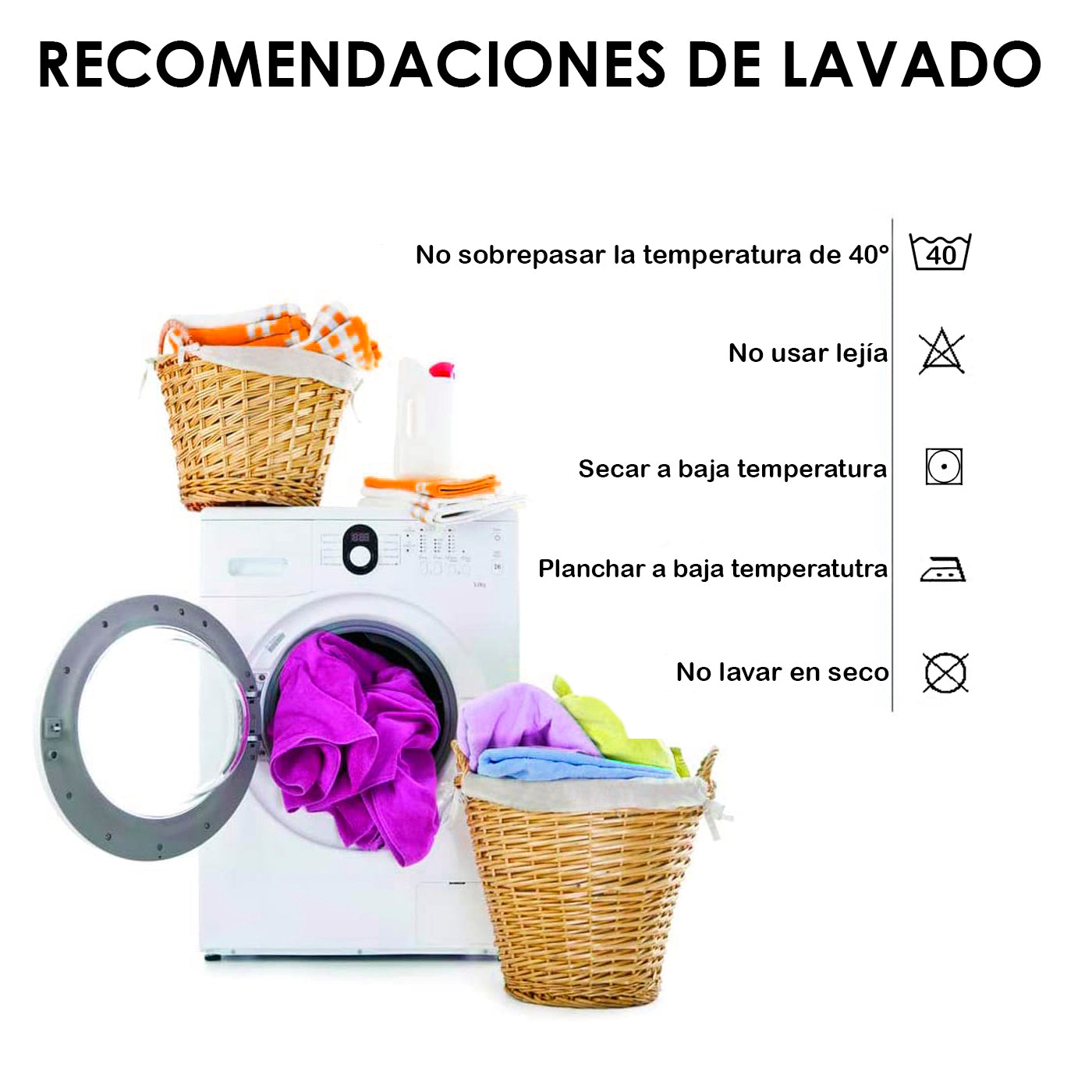• MANTENIMIENTO: Lavar a máquina a una temperatura máxima de 40ºC, colores fuertes por separado. No usar secadora, lejía y no planchar. No hace bolitas.