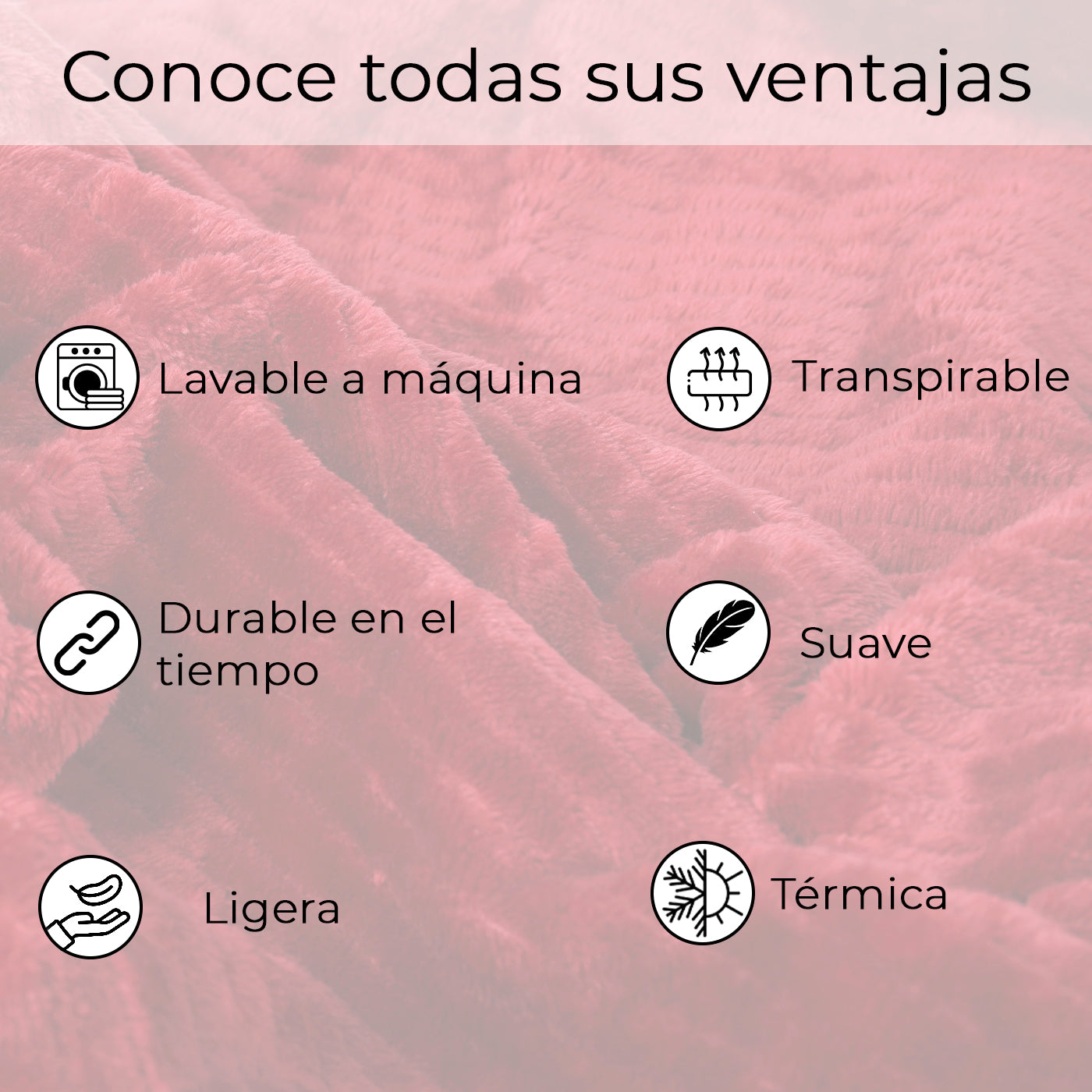 EXTRA SUAVE: La manta ofrece una textura extra suave con efecto terciopelo y agradable al tacto.