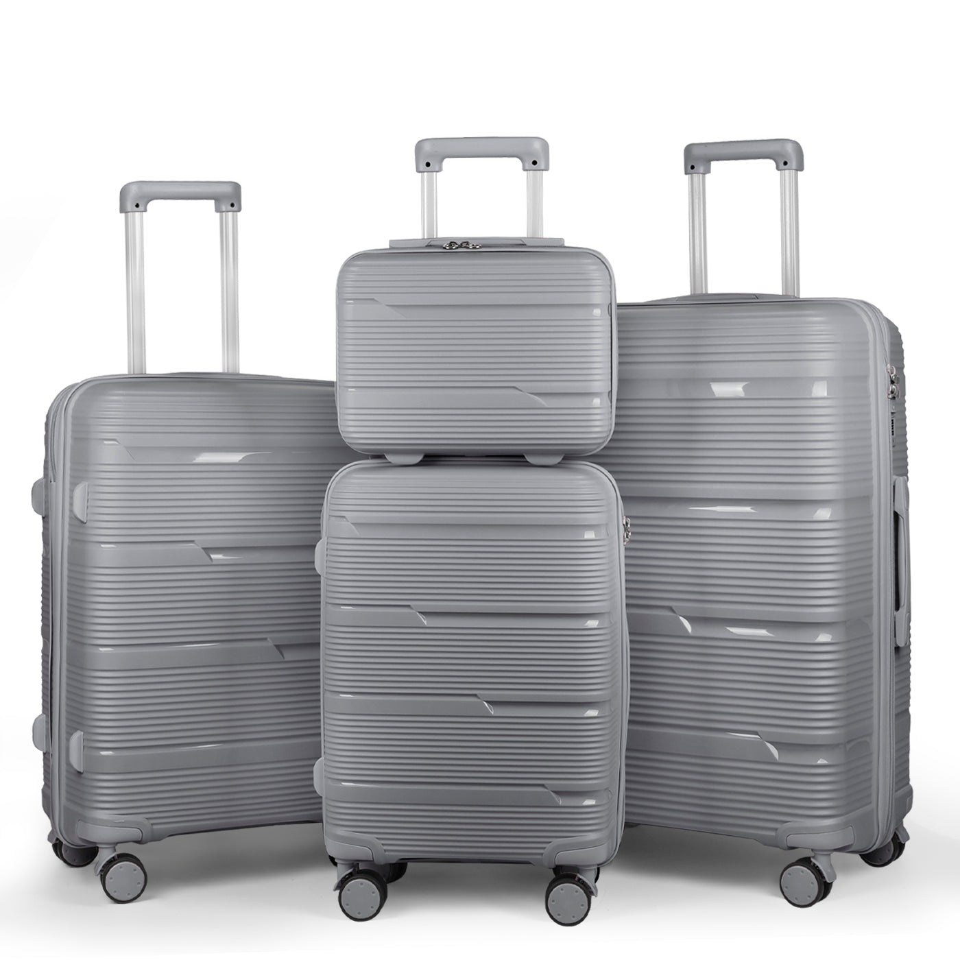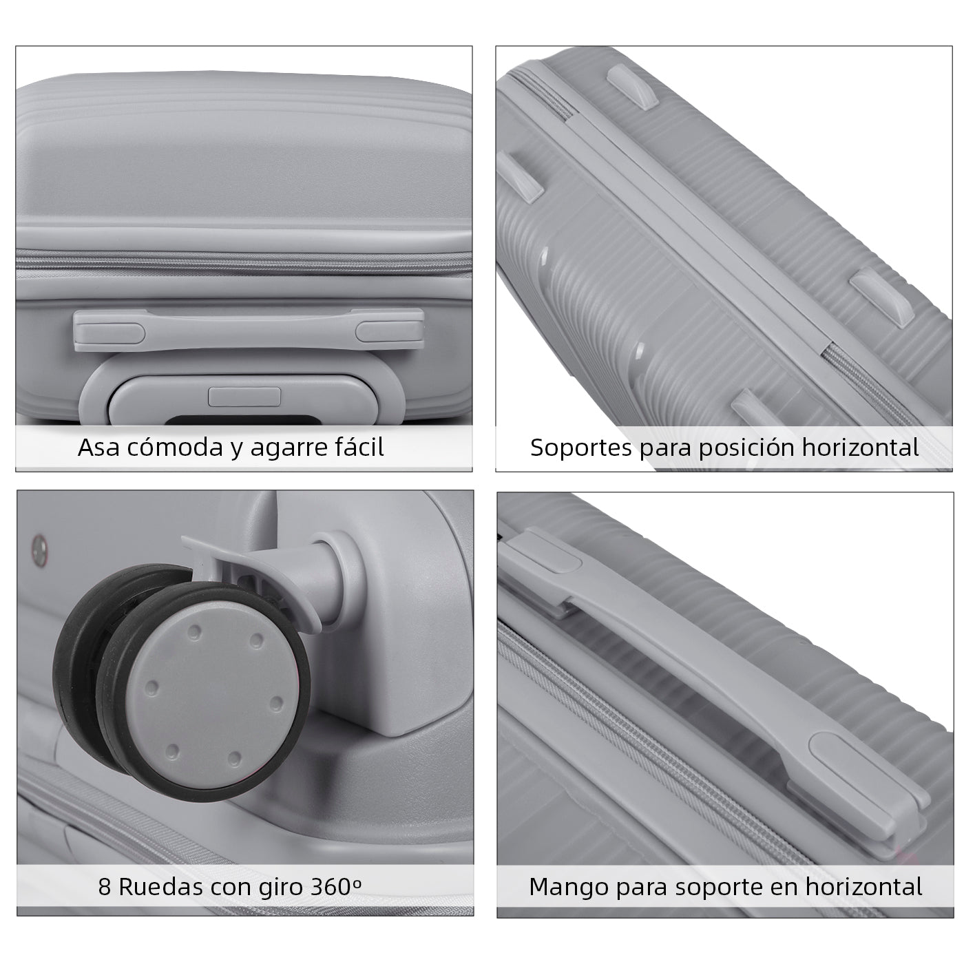 Juego de 4 Maletas de Viaje Neceser, Cabina, Mediana y Grande de Polipropileno- Gris