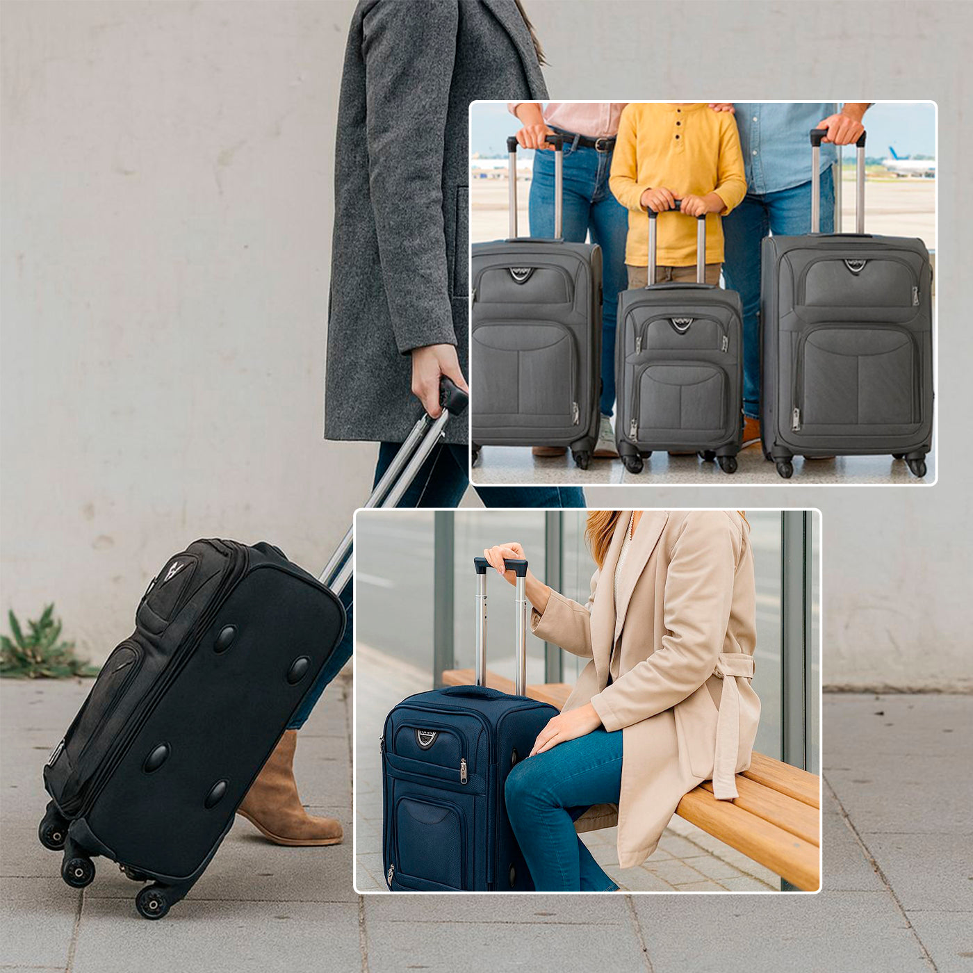 Juego de Maletas 3pcs Cabina, Mediana y Grande de Tela, Maleta Expandible- Gris