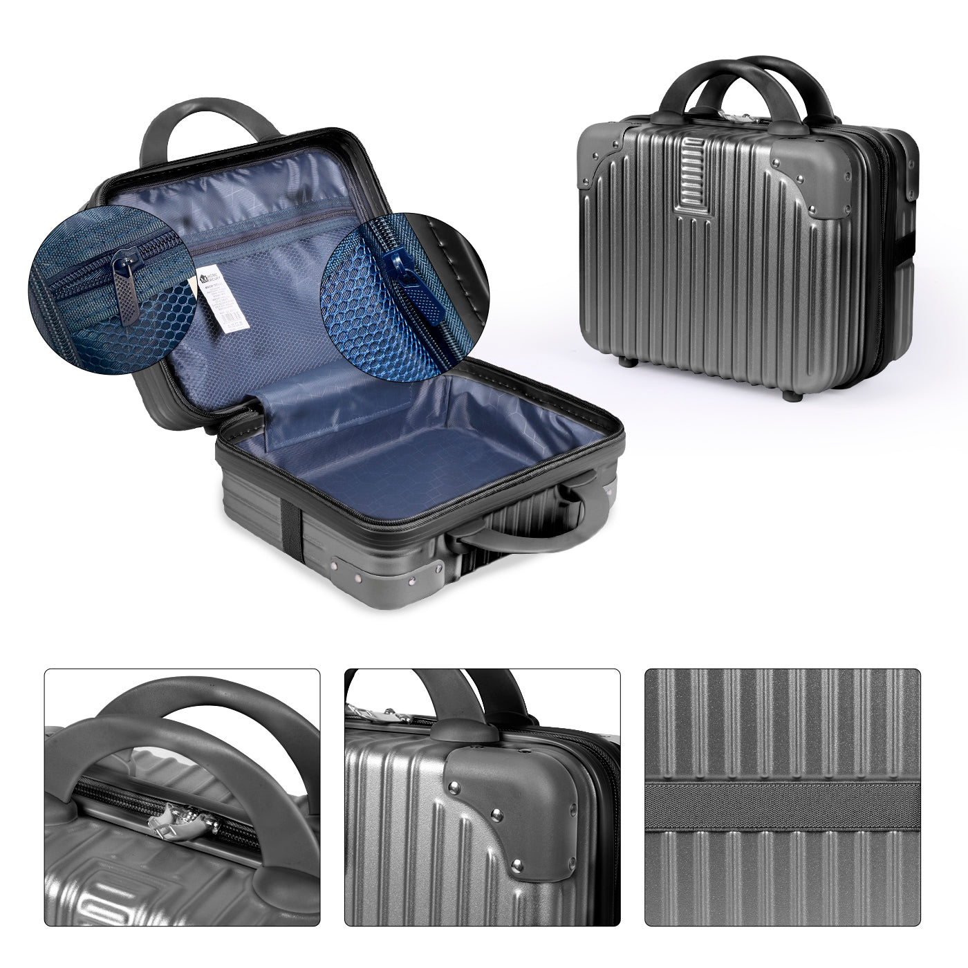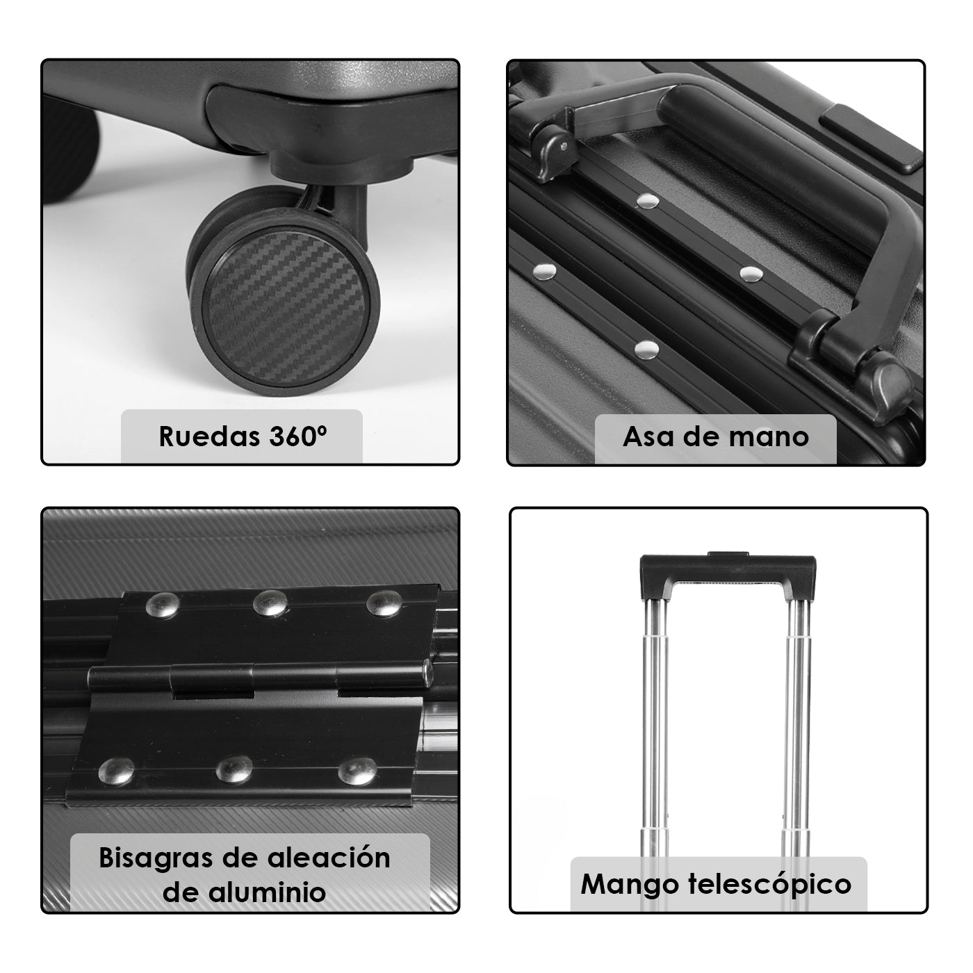 COMPOSICIÓN: La maleta está elaborada de material rígido ABS de alta calidad, es ligera, rígida y resistente a los impactos.