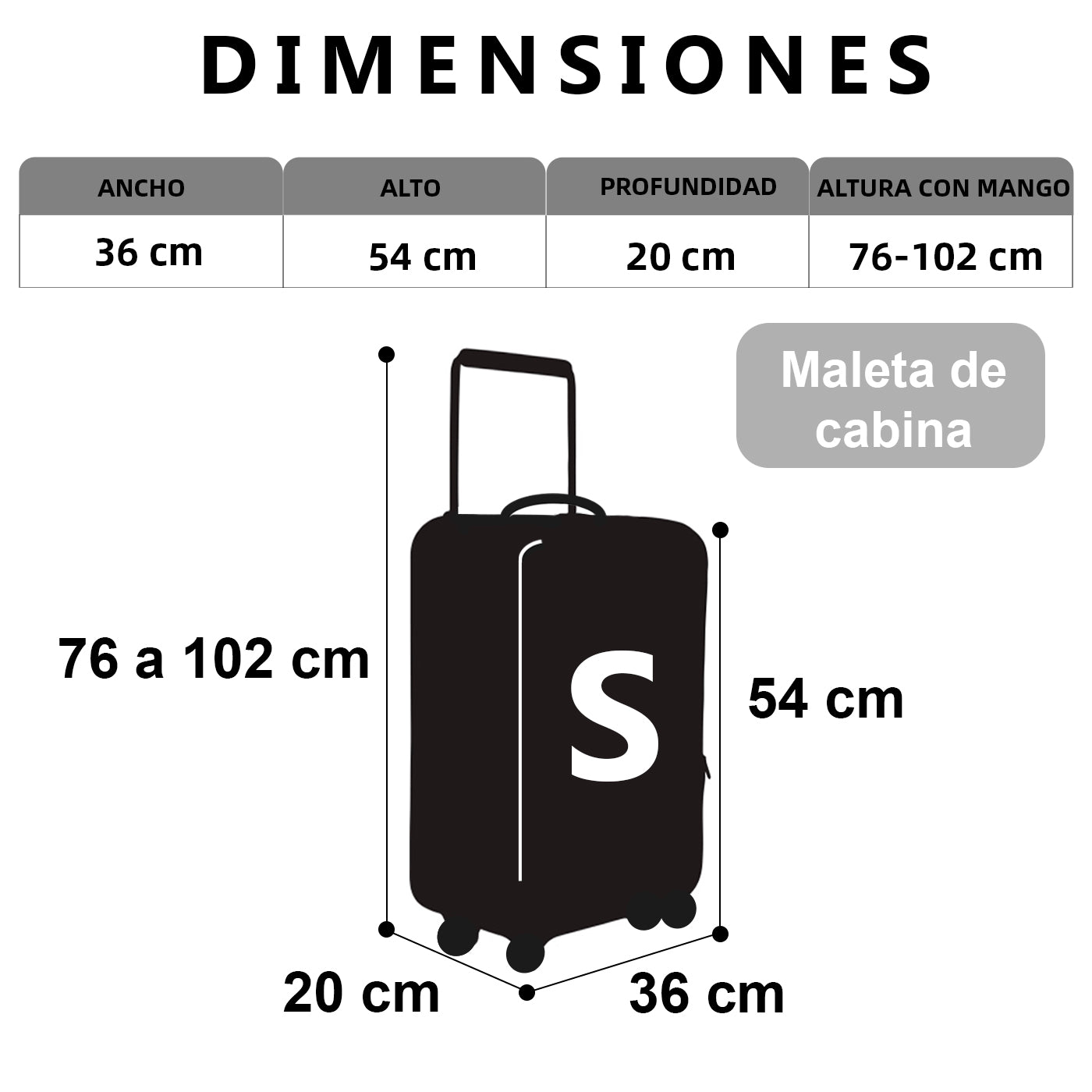 DIMENSIONES: La maleta mide 54x36x20cm.