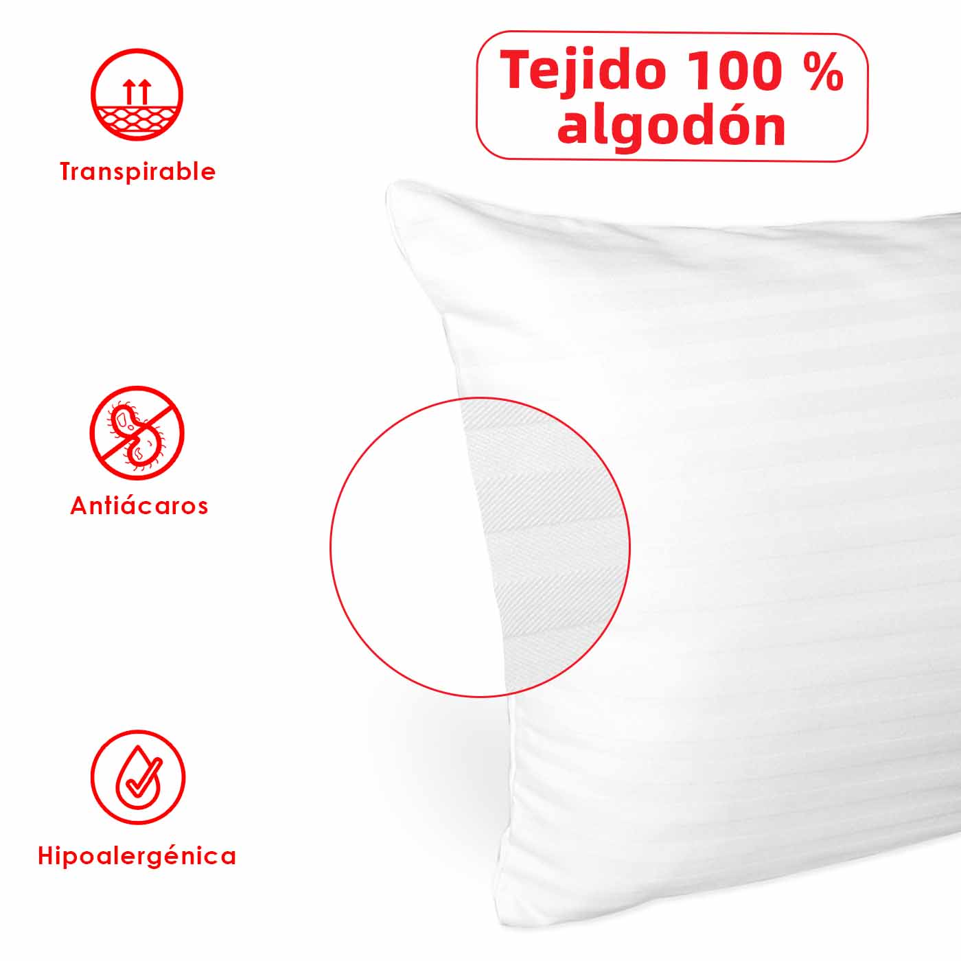 • MATERIAL: Esta compuesto de 100% Algodón que protege la almohada de bacterias y anti ácaros, es ideal para conservarla durante más tiempo en buenas condiciones.