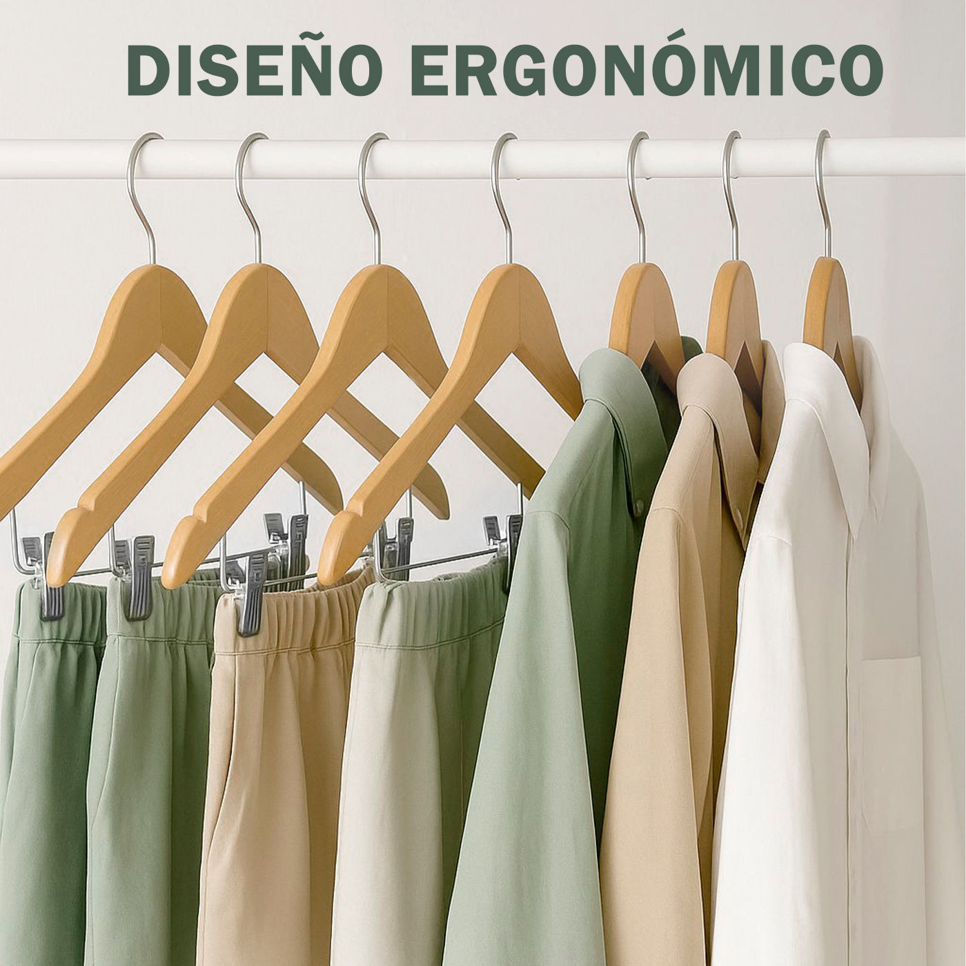 Perchas de Madera con Pinzas y Muescas Antideslizantes- Madera