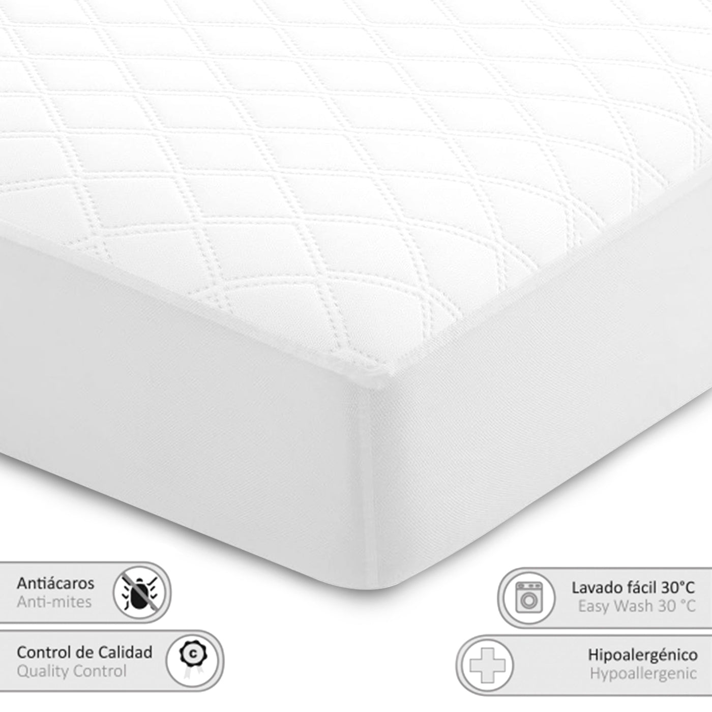 • IMPERMEABLE: Es ideal para proteger el colchón del sudor, orina y manchas. Tiene una máxima absorbencia, es recomendable para niños y ancianos.