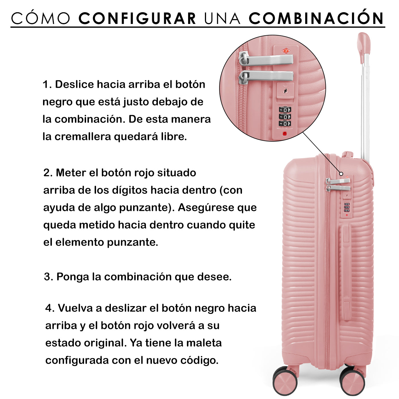 SEGURIDAD: Tiene un cierre de seguridad con clave de 3 dígitos para una máxima seguridad.